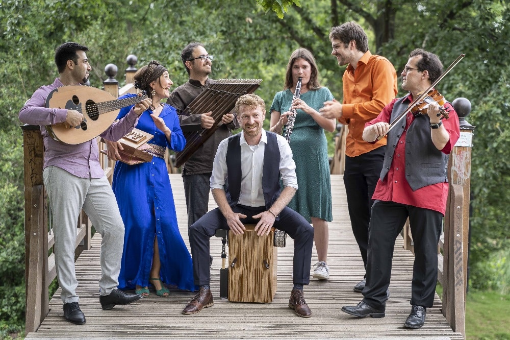 Im gemeinsamen Spiel entsteht aber auch immer wieder etwas Neues. Zum Ensemble gehören unter anderem Ali Pirabi (Santur und Kamantsche), Basel Alkatrib (Oud), Ghandi Aljrf (Tombak und Gesang), Karolina Trybala (Gesang), Roberto Fratta (Percussion), Friederike von Oppeln-Bronikowski (Klarinette), Samuel Seifert (Violine) und Tilmann Löser (Piano).