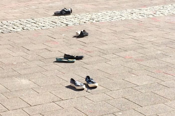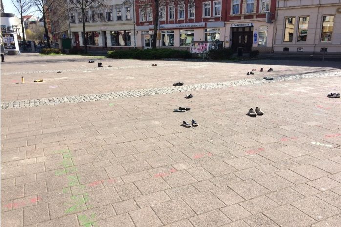 Viele Leipziger/-innen beteiligten sich und drückten ihren Protest beim Spazierengehen aus: An 10 Orten in ganz Leipzig, wie etwa der Ausländerbehörde oder dem Neuen Rathaus, malten die Menschen mit Straßenkreide Sprüche und Bilder auf die Straße, andere hinterließen farbige Fußabdrücke, um ihren Protest zu symbolisieren, ohne an Ansammlungen teilzunehmen.
