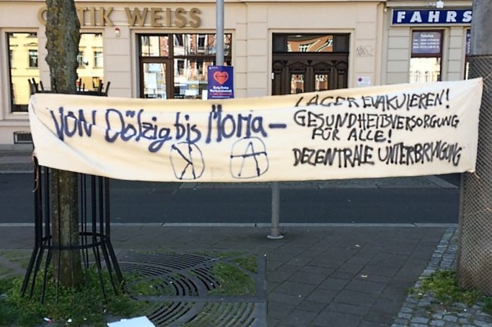 Im Rahmen der #LeaveNoOneBehind-Kampagne organisierte die Seebrücke Leipzig am Sonntag, den 05.04.2020, gemeinsam mit Fridays for Future Leipzig und Leipzig nimmt Platz einen Aktionstag. Die Organisationen kritisieren die unmenschlichen Bedingungen, unter denen die Bewohner*innen der Geflüchtetenlager leben und fordern deren Evakuierung.