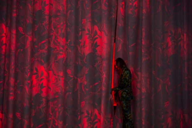 Videotechnik wird ausschließlich für die Projektion von Texten verwendet. Wir zeigen die Aufzeichnung der Performance vom Centre Pompidou in Paris in französischer Sprache mit deutschen Untertiteln. Die Aufzeichnung entstand am 12. März 2020, einen Tag vor dem Shutdown in Frankreich.