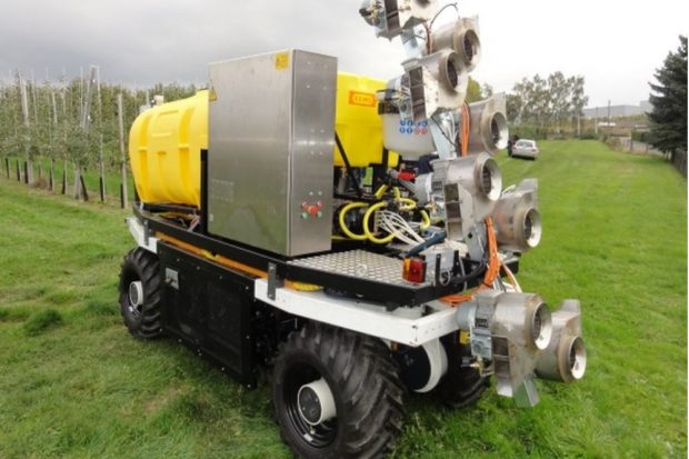 In der Praxis kann der Roboter zur Ausbringung von Pflanzenschutzmitteln, aber auch für Pflegemaßnahmen wie die Baumstreifenbearbeitung oder das Mulchen der Fahrgasse eingesetzt werden. Teil der Robotereinheit wird ein spezielles Pflanzenschutzgerät sein, welches durch eine separate Steuerung des Luftstroms und der Pflanzenschutzmittelmenge an jeder Düse dazu beitragen soll, Pflanzenschutzmittel einzusparen und präzise auszubringen.