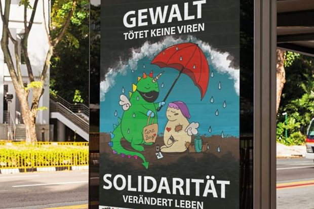 Zusammen mit der Bahnhofsmission Leipzig, Caritasverband Leipzig e. V., Luisa Schneider (MPI) und Strange Designs, haben wir die Aktion #TiMMigegenGewalt ins Leben gerufen. Seit Dienstag hängen öffentlich in ganz Leipzig 100 Plakate, um darauf aufmerksam zu machen.