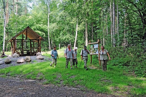 Anschließend bietet das Gasthaus „Schöne Aussicht“ eine willkommene Stärkung für die letzten Kilometer. Ziel der Wanderung ist Bad Schmiedeberg. In dem staatlich anerkannten Moor-, Mineral- und Kneippheilbad in der Dübener Heide können Besucher zum Beispiel das Wasserschloss Reinharz mit zugehörigem Schlosspark und weitere kulturhistorische Sehenswürdigkeiten besichtigen.