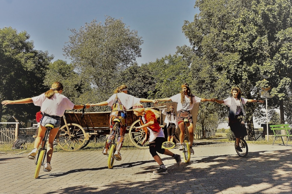 Durch Ersteigern von Ideen- und Wunschkarten konnten die Kinder Ihre vordergründigen Bedürfnisse sichtbar machen. Am beliebtesten war dabei der Wunsch nach der Begegnung mit Tieren. Als weitere Bedürfnisse ergaben sich Orte für kreative Bewegung, z.B. Zirkusdisziplinen, Klettern, Wasserspiele, etc. sowie Orte zum Treffen und Übernachten mit Freunden in originellen Behausungen, z.B. Baumhäuser, Zirkuswägen, u.ä.. Aus den vielfältigen Ideen inszenierten die TeilnehmerInnen ihre Zirkusnummern.