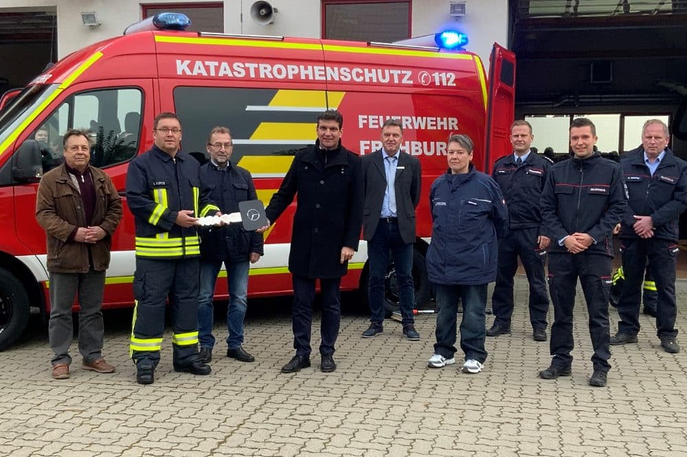 Die Katastrophenschutzeinheit Süd des Landkreises versammelte sich Dienstagsabend am Feuerwehrgerätehaus in Frohburg. Hier übergab Landrat Henry Graichen einen neuen Einsatzleitwagen, kurz ELW1, an Frohburgs Bürgermeister Wolfang Hiensch und somit an die Kameraden und Kameradinnen der Freiwilligen Feuerwehr.