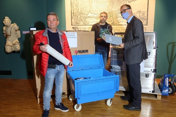 Dokumentationsleiter Michael Stephan zeigt sich erfreut: „Wir konnten unseren Bestand von einer auf aktuell fünf Notfallboxen erweitern, was einen signifikanten Zuwachs bedeutet. Nach einem Wasserschaden im Museum selbst, wo sich unsere Depots befinden, ist es noch einmal bedeutsamer geworden, das Kultur- und Kunstgut unserer Häuser besser bergen und auch andere Einrichtungen des Leipziger Notfallverbundes unterstützen zu können.