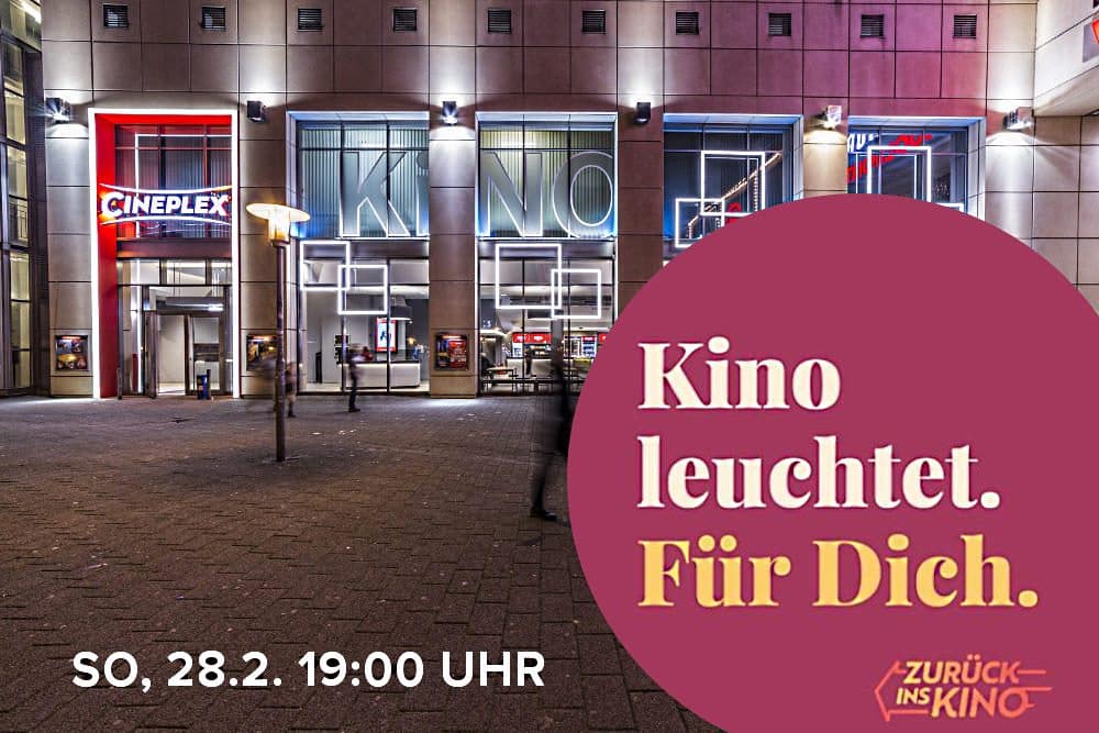 Punkt 19:00 Uhr geht im Cineplex Leipzig das Licht im Foyer an, werden Theken, Monitore und die Leuchtreklame am Haus erleuchten. Und auch im Saal öffnet sich der Vorhang und der Projektor „schmeißt“ das Aktionsmotiv #kinoliebe auf die Leinwand.