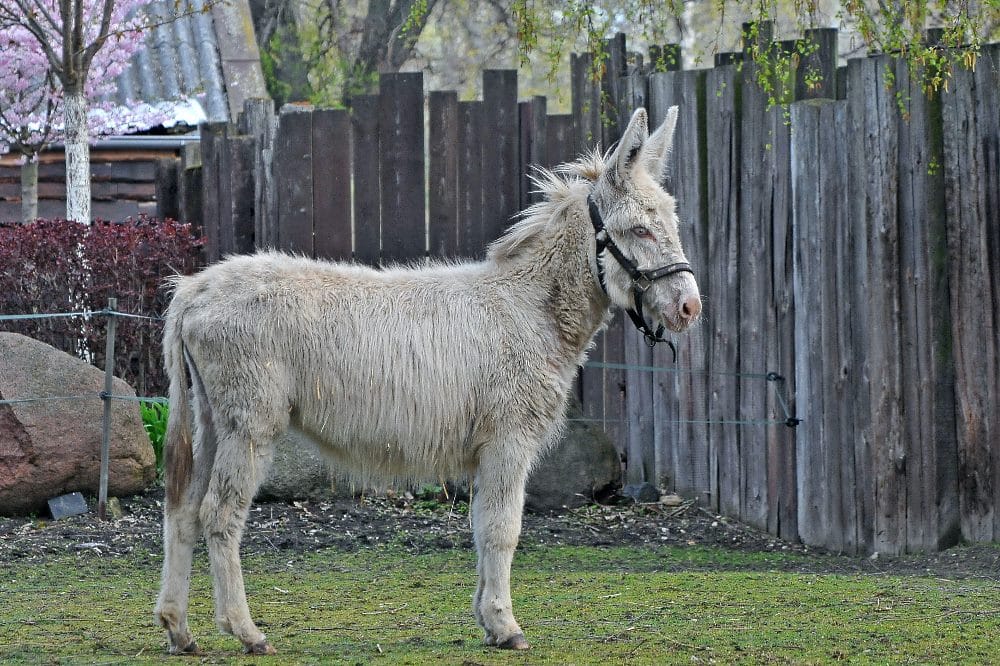 Sie heißt Sissi, hat blaue Augen und helles Fell. Die einjährige Eselstute aus der Arche Alfsee ist seit Montag, dem 19. April 2021, neue Bewohnerin des Tiergartens in Delitzsch.