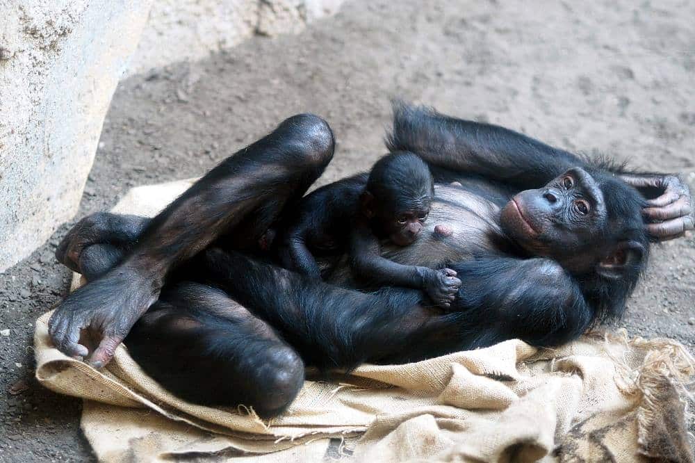 Erster Nachwuchs im Jubiläumsjahr der Menschenaffenanlage Pongoland: Bonoboweibchen Luiza (16) brachte am 30. April vormittags im Schlafraum ihren ersten Nachwuchs zur Welt. Die Pfleger konnten bereits feststellen, dass es sich um ein weibliches Jungtier handelt.