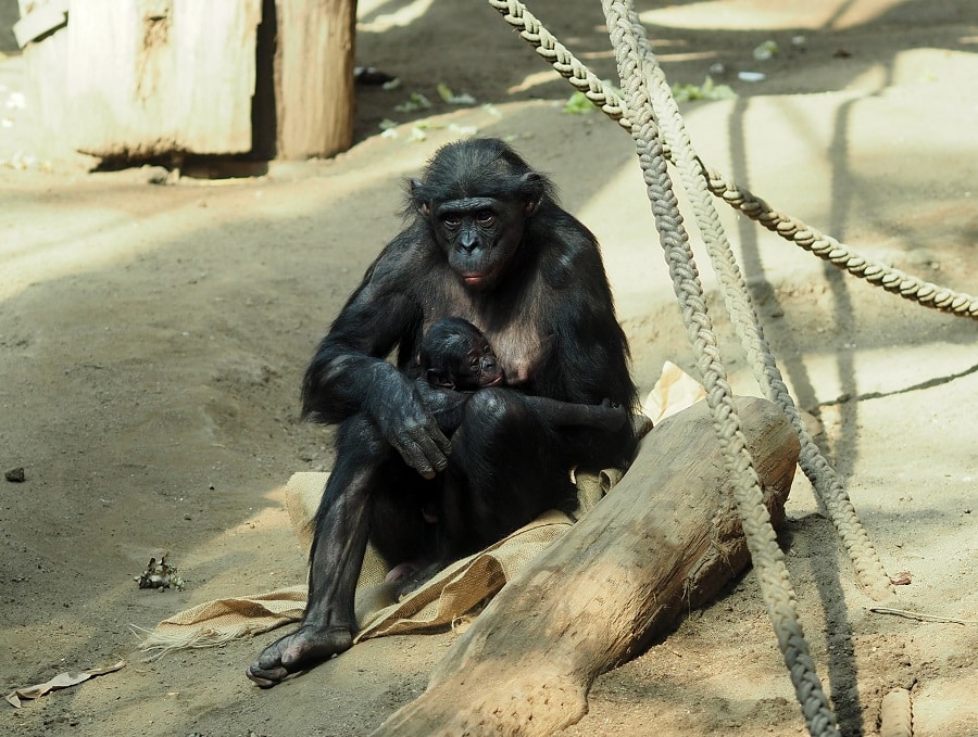 Taufe in Pongoland: Das am 30. April geborene Bonobo-Mädchen von Luiza (16) wurde von den Pflegern und Mitarbeitern des Max-Planck-Instituts, die traditionell gemeinsam die Namenswahl treffen, auf den Namen Gerda getauft. „Gerda entwickelt sich stabil, nimmt inzwischen neugierig am Geschehen in der Bonobogruppe teil und auch Luiza hat sich gut in ihre neue Mutterrolle eingefunden, ist viel sicherer im Umgang mit ihrer Tochter geworden und kümmert sich äußerst fürsorglich“, bewertet Bereichsleiter Daniel Geissler die Situation.