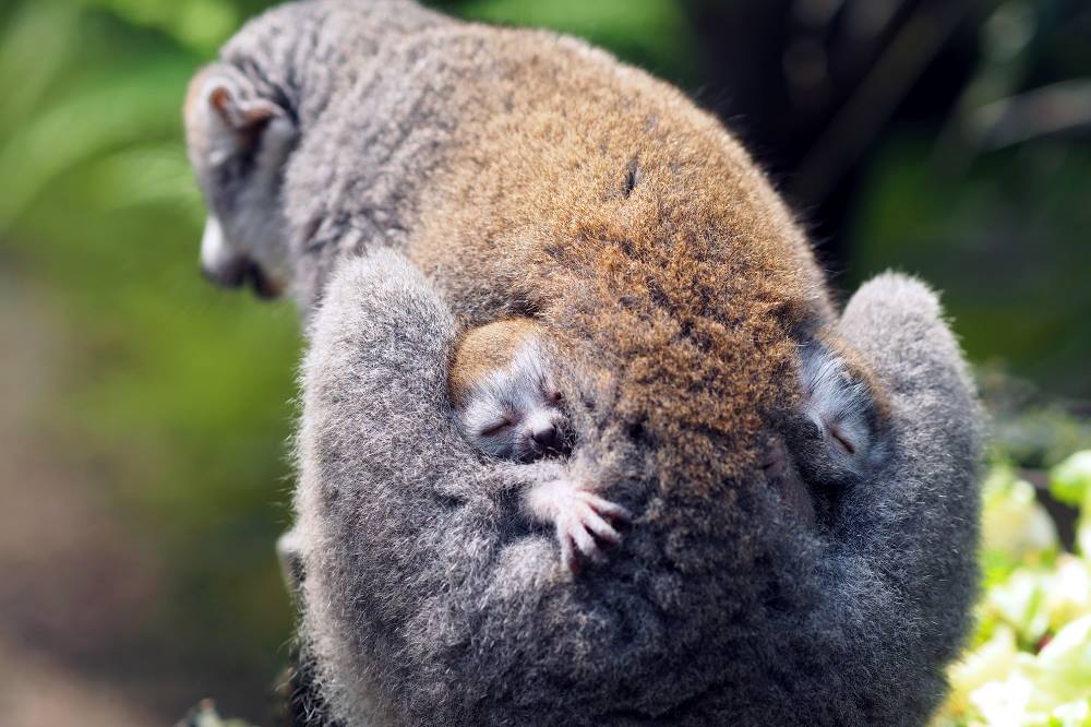 Zwillings-Nachwuchs in Gondwanaland: Das fünfjährige Kronenmaki-Weibchen Amber brachte ein Jahr nach ihrem letzten Jungtier am 9. Mai Zwillinge zur Welt – ein männliches und ein weibliches Jungtier. Die Geburt verlief komplikationslos für die erfahrene Mutter, die in den letzten Jahren regelmäßig für Nachkommen sorgte und sich stets äußerst fürsorglich kümmert.