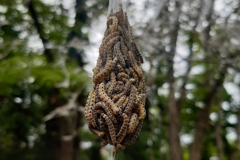 Wie auch in den vergangenen Jahren hüllt die Gespinstmotte zum Schutz ihrer Nachkommen wieder Sträucher und Bäume in einigen Leipziger Parks und Grünanlagen ein. Dies ist aktuell vor allem im Mariannenpark und im Johannapark zu beobachten. Die Massenansammlungen der Raupen werden häufig als unangenehm empfunden, sind aber für den Menschen ungefährlich. Auch für Allergiker besteht keine Gefahr.