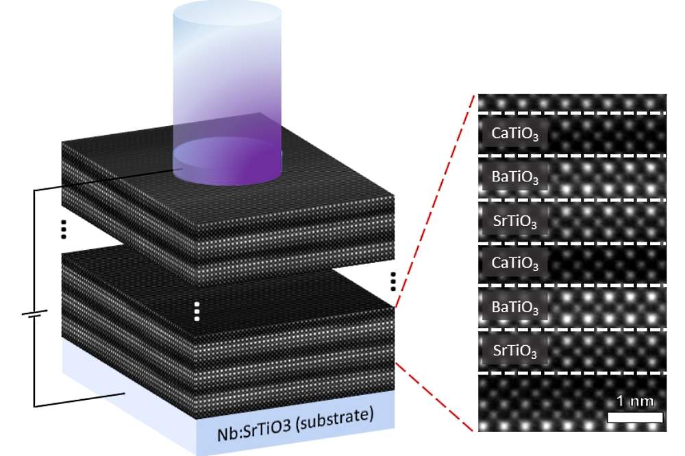 Yeseul Yun, Doktorandin an der MLU und Erst-Autorin der Studie, sagt: „Wir haben das Bariumtitanat zwischen Strontium- und Calciumtitanat eingebettet. Dafür werden die Kristalle mit einem Hochleistungslaser verdampft und auf Trägersubstraten wieder abgelagert. Das so hergestellte Material besteht aus 500 Schichten und ist etwa 200 Nanometer dick.“