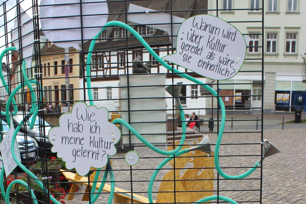 Zu insgesamt drei Ausstellungsthemen – „Soziale Gerechtigkeit“, „Kulturelle Identität“ und „Geschlechterbilder“ – entwickelten Jugendliche in den vergangenen Wochen auch jene Kunstobjekte, welche nun auf dem Wurzener Markltplatz ausgestellt sind und so deren Gedanken im öffentlichen Raum sichtbar gemacht werden.