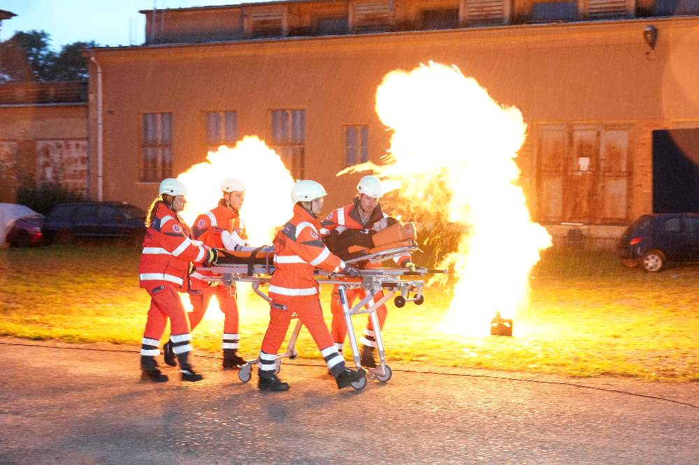 Am Samstag, 18.September 2021, übten insgesamt knapp 90 Sanitäter und Mimen aus Sachsen auf dem Trainingsgelände der Johanniter-Akademie Mitteldeutschland (DTEC – Desaster Trainings Education Center) den Ernstfall. Die Einsatztrupps hatten die Aufgabe, ein realitätsnahes Szenario in den Griff zu bekommen und dabei Menschenleben zu retten und Verletzte zu versorgen.