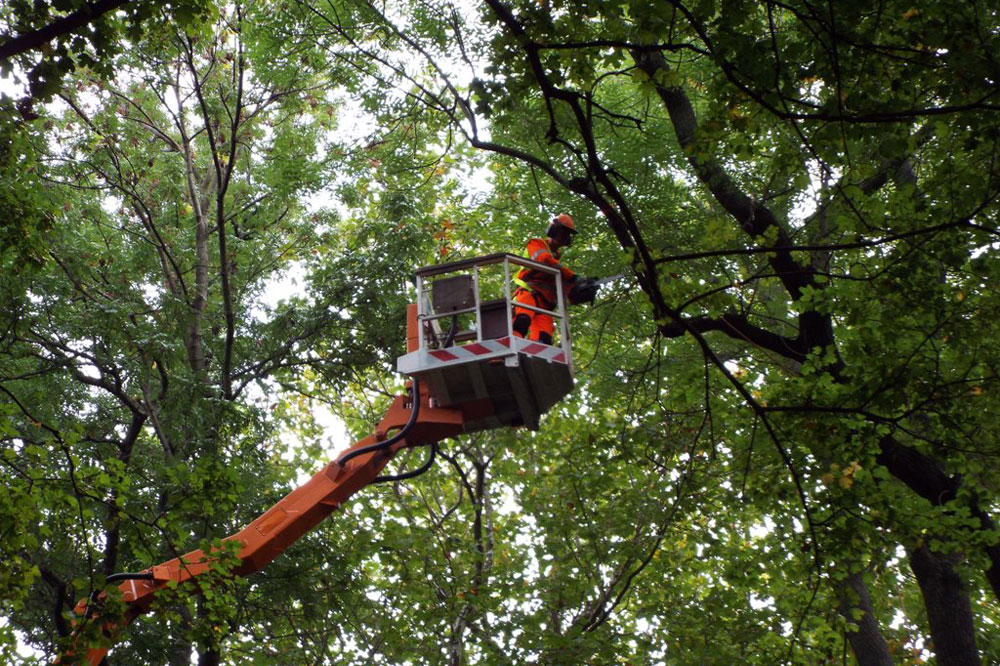 Ab Montag, 6. September, werden die markanten Hainbuchen im denkmalgeschützten Volkspark Kleinzschocher wieder in ihre historische Form gebracht. Die Gehölze rahmen das Rosenparterre entlang der Küchenholzallee ein.