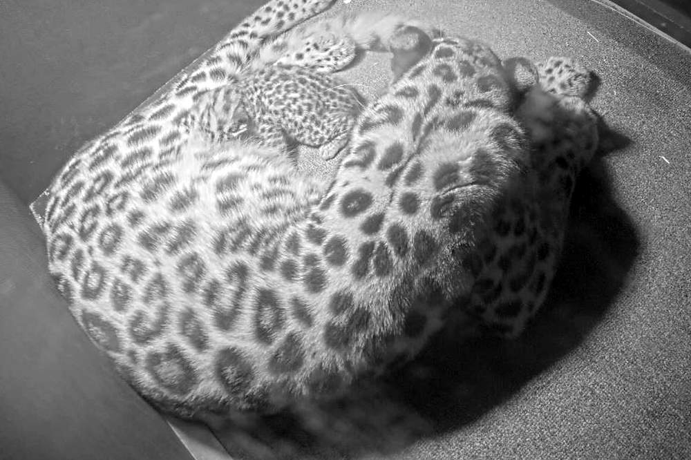 Zuchterfolg bei einer der seltensten Katzen weltweit: Das Amur-Leoparden-Paar Mia (8) und Kater Xembalo (16) sorgte am 3. September zum dritten Mal für Nachwuchs im Leoparden- Tal. Die Geburt verlief für Mia und ihr Jungtier komplikationslos. Bisher kümmert sich die erfahrene Katze sehr fürsorglich um ihren jüngsten Spross, der regelmäßig trinkt und einen stabilen Eindruck macht, wie die Aufnahmen der Videoüberwachung verraten.
