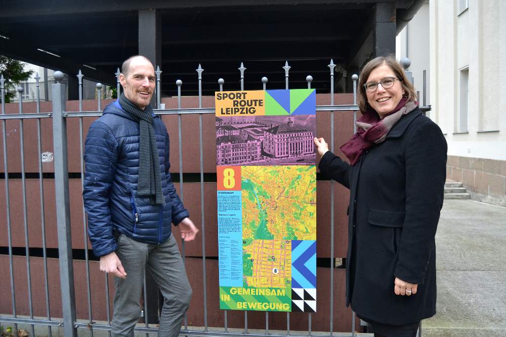 Die Sportroute – bestehend aus Stelen und Tafeln – wird in den kommenden Jahren auf 22 Stationen anwachsen. Auf den Informationselementen finden sich Daten, Fakten und Illustrationen zu Leipziger Sportstätten, Sportarten und Institutionen des Sports. Darüber hinaus wird mit ihnen die Erinnerung an besondere Leistungen von Persönlichkeiten aus mehr als 200 Jahren des organisierten Sports belebt.