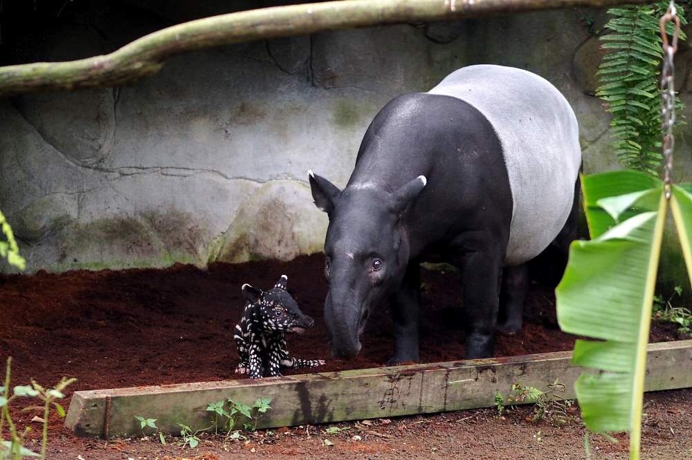 Nachwuchs in Gondwanaland: Schabrackentapirweibchen Laila (12) hat am 5. November in der Nacht nach einem Jahr Tragzeit ein männliches Jungtier zur Welt gebracht. Die Tierpfleger entdeckten den Neuzugang in der Schabrackentapir-Familie (Tapirus indicus) am Freitagmorgen zum Dienstbeginn auf der Außenlage, wo auch die Geburt stattgefunden hat.