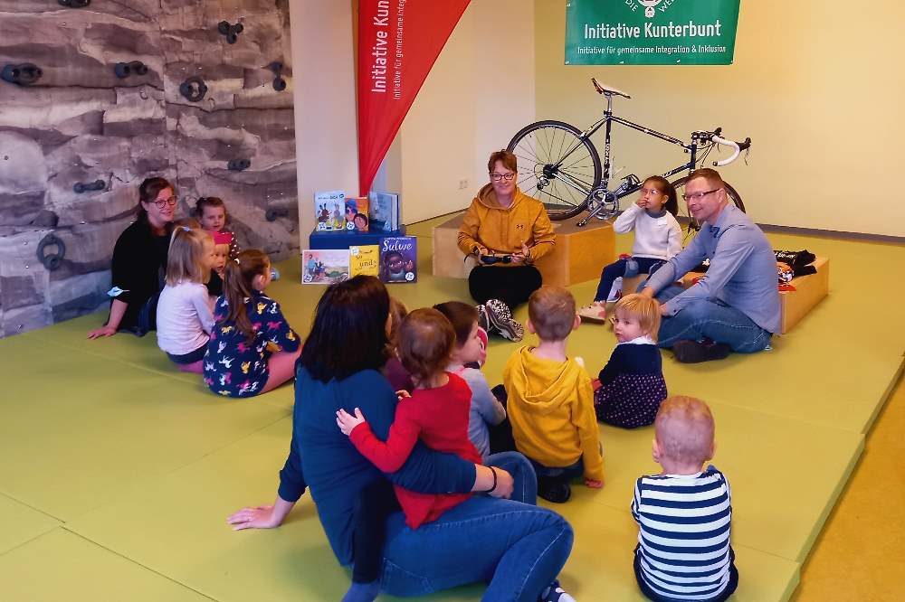 Passend zum gemeinschaftlichen Vorlesen ist das Motto des diesjährigen Vorlesetages – Freundschaft und Zusammenhalt. Aus unserer inklusiven Kita kamen Kinder aus allen Bereichen (Kinder mit und ohne Behinderung) im Turnraum zusammen (unter Einhaltung der geltenden Coronaschutzverordnung).