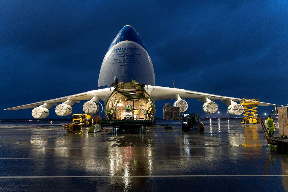 Gestern landete die Antonow AN-225, das größten Flugzeug der Welt, am Flughafen Leipzig/Halle (LEJ). An Bord befanden sich über 500 Paletten mit rund 3,5 Millionen Corona-Tests. Für die kommenden Wochen ist ein weiterer Flug der AN-225 geplant.