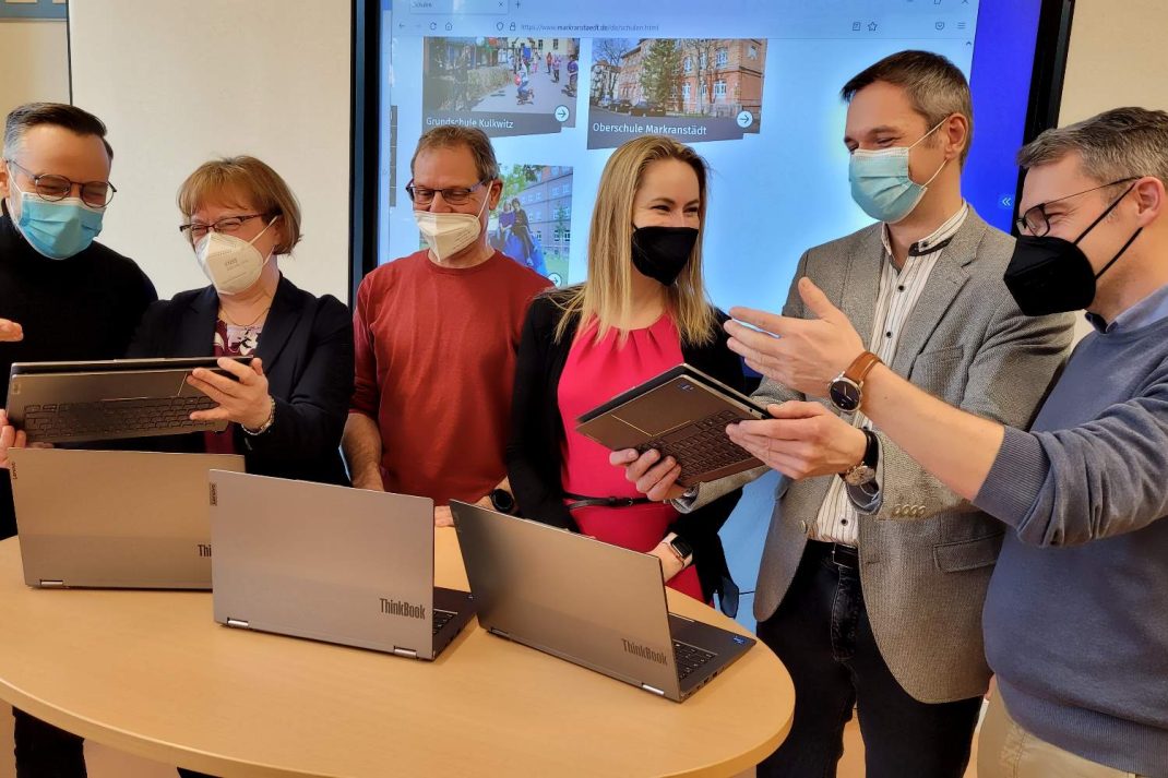Im Rahmen der „Lehrer-Endgeräte-Förderverordnung“ hat die Stadt Markranstädt für die drei Grundschulen Markranstädt, Kulkwitz und Großehna sowie für die Oberschule und das Gymnasium 99 Endgeräte für die Lehrerschaft erworben. Diese Geräte wurden am 10. Februar 2022 an die Stadt ausgeliefert und durch die Bürgermeisterin und Vertreter aus den Schulen in Empfang genommen.