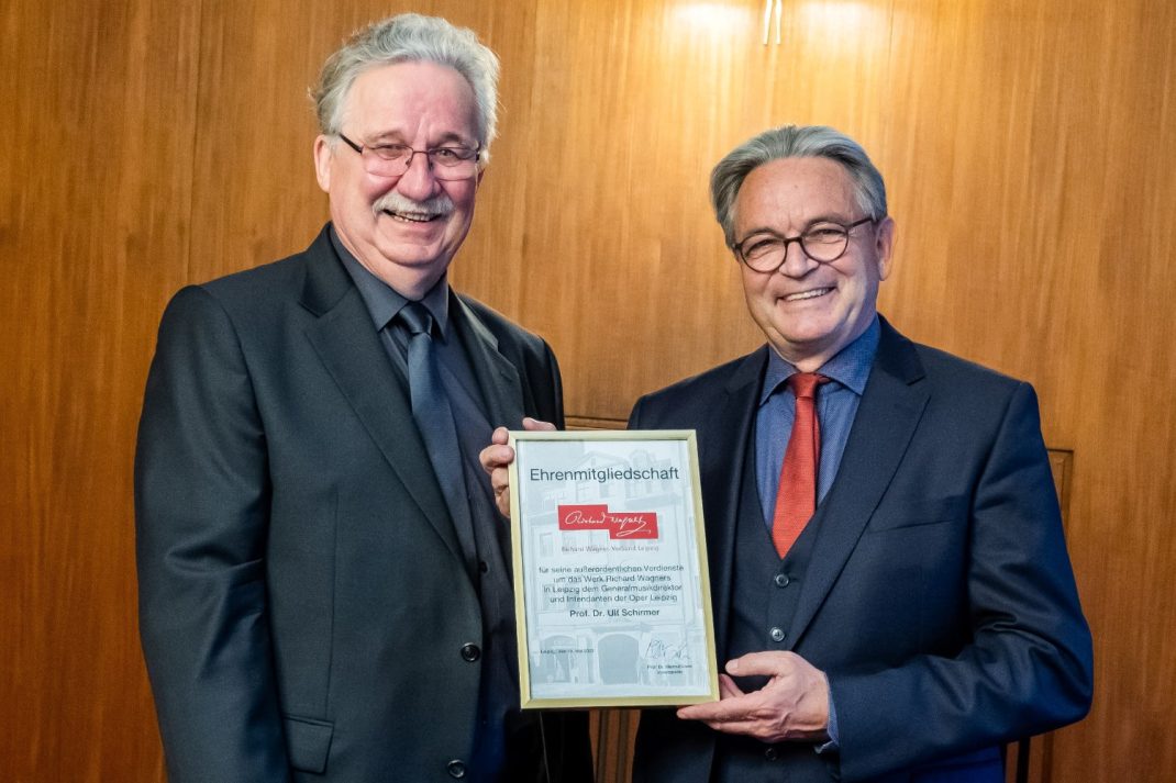 Helmut Loos ging in seiner Laudatio auf das neue Ehrenmitglied weit in die Geschichte der Leipziger Wagner-Pflege zurück und stellte die Verdienste Schirmers, die 2005/06 mit der Einstudierung des „Parsifal“ ihren Anfang nahmen, in eine Reihe mit den beispielhaften Leistungen eines Angelo Neumann (Operndirektor 1876–1882), Gustav Brecher (Operndirektor 1923–1933) und Joachim Herz (Operndirektor 1959–1976).