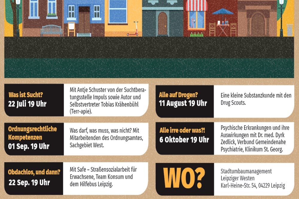 Am 1.9. um 19 Uhr kommen 2 Mitarbeiter/-innen vom Ordnungsamt in den Stadtteilladen in die Karl-Heine-Straße 54, um ihre Arbeit und die Grenzen dieser zu erklären. An den letzten beiden Abenden sprechen wir über Obdachlosigkeit und psychische Erkrankungen. Beim letzten Thema freuen wir uns sehr, Herrn Dr. Zedlick als Referenten gewonnen zu haben. Er ist der Leiter der gemeindenahen Psychiatrie in Leipzig.