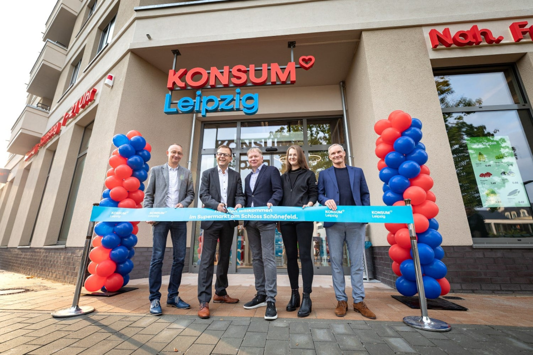 Feierlich eröffnet wurde die Filiale durch die Vorstände der Konsum Leipzig eG Dirk Thärichen und Michael Faupel mit Torsten Bonew, erster Bürgermeister und Beigeordneter für Finanzen der Stadt Leipzig, und im Beisein von Jens Eberl, Geschäftsführer des Vereins Schloss Schönefeld und Filialleiterin Lisa Marie Zocher.
