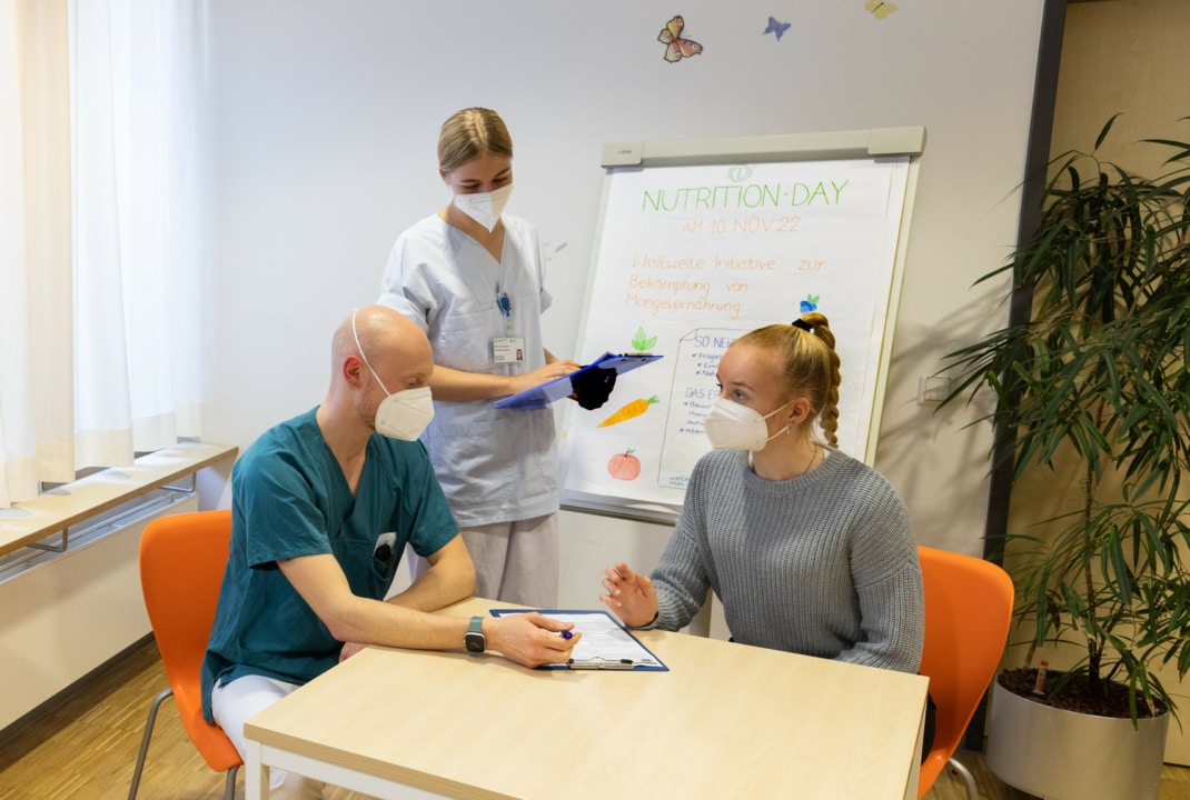 Zudem wird die Situation vor Ort auf Station erfasst: Wieviele Pflegekräfte, Ärzt/-innen und andere Berufsgruppen arbeiten im untersuchten Bereich? Gibt es eine strukturierte Ernährungstherapie, und wie ist diese gestaltet? Diese und viele weitere Fragen gestalten den „nutritionDay“.