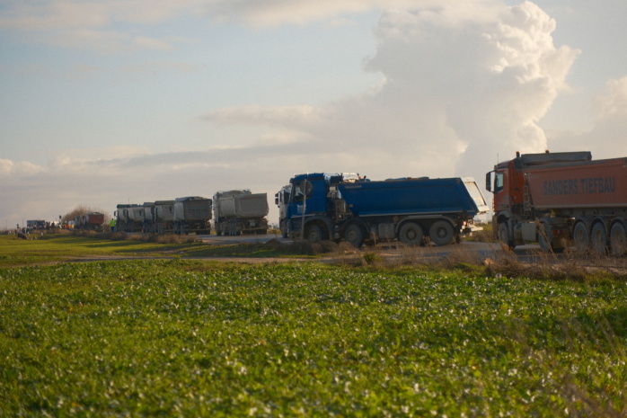 Rund 100 Menschen der Gruppe „Kohle erSetzen!“ blockieren zurzeit die nördliche Hauptzufahrt zum Tagebau Garzweiler. Wo sonst minütlich Lastwagen die Grube anfahren, stört jetzt eine Sitzblockade den reibungslosen Betriebsablauf des Tagebaus. Die Aktivist/-innen möchten ein deutliches Zeichen setzen gegen die Zerstörung von Lützerath und den weiteren Abbau von Braunkohle für den Profit von RWE. Die heutige Aktion ist eingebettet in vielfältige Aktionen rund um die Räumung von Lützerath. Die Sitzblockade dauert weiter an, die Polizei ist vor Ort.