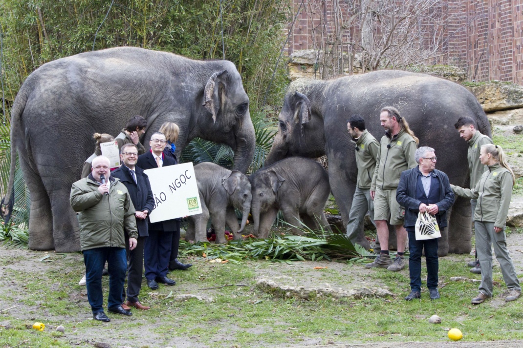 „Der bedeutungsvolle Name passt hervorragend zu diesem wichtigen Nachwuchs. Der Artenschutz und Erhalt bedrohter Arten ist uns Aufgabe und Herzensangelegenheit gleichermaßen“, sagt Zoodirektor Prof. Jörg Junhold. Der Botschafter hat eine ganz besondere Beziehung zu BẢO NGỌC. Ihre Großeltern väterlicherseits stammten einst aus Vietnam. Diese besondere Verbundenheit soll mit der Namenswahl ebenso wie mit der Übernahme der Patenschaft für das Jungtier unterstrichen werden. Michael Weichert, Präsident des Freundes- und Fördervereins, überreichte den Ehrengästen die Patenurkunde.