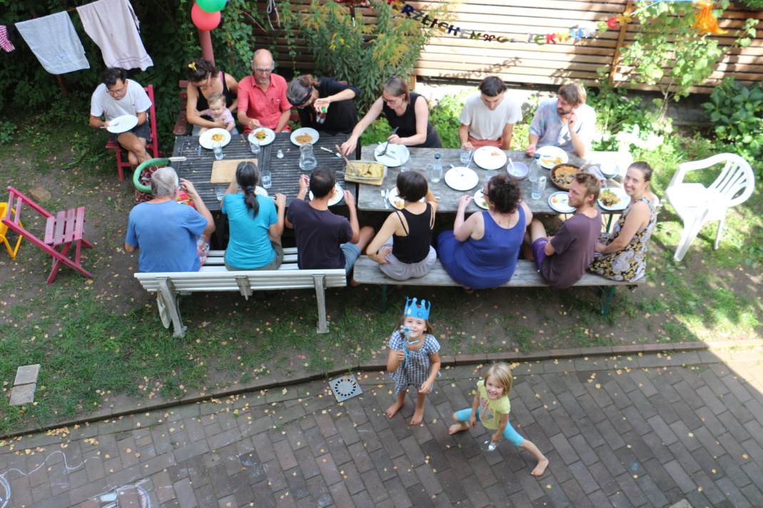 Das „Haus im Fluss“ soll 2025 das Zuhause einer bereits bestehenden Hausgemeinschaft aus Kleinzschocher werden. Die jetzigen zwanzig Bewohner*innen im Alter von 0 bis 62 Jahren leben bereits gemeinschaftlich zusammen. Das bedeutet, dass sie – neben Küchen und Bädern – auch ihre Freuden und Sorgen im Alltag teilen und sich gegenseitig unterstützen.