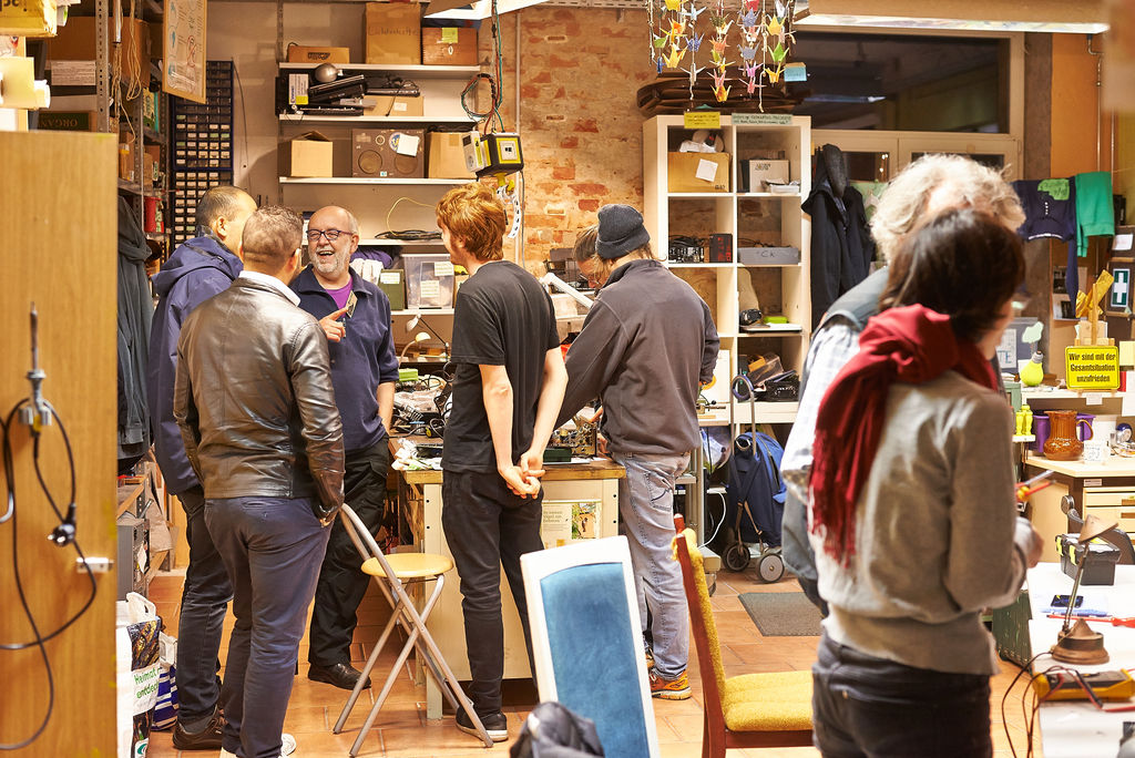 Im Reparaturcafé und Umweltbildungsort „Café kaputt“ in Leipzig-Lindenau reparieren Bürger*innen von jung bis alt verschiedenster Generationen und Milieus schon seit 2014 ihre Alltagsgegenstände. Mit Hilfe von ehrenamtlichen Reparaturhelfer*innen eignen sie sich handwerkliches Know-How an, retten ihre Dinge vor der Tonne und fördern so schon seit Jahren die neuerdings erklärte Zero-Waste Strategie der Stadt.
