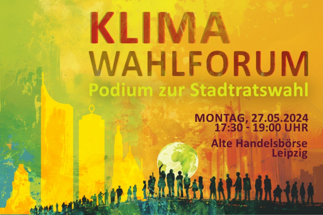 Zur Vorbereitung auf die anstehende Stadtratswahl lädt das Klimabündnis Leipzig fürs Klima am Montag, dem 27. Mai in die Alte Handelsbörse am Naschmarkt. Für das Podium angekündigt haben sich Kandidatinnen und Kandidaten aus sechs Parteien: Michael Neuhaus (DIE Linke), Jürgen Kasek (Grüne), Dr. Sabine Heymann (CDU), Bettina van Suntum (SPD), Ralf-Peter Wirth (FDP) und Tobias Kretschmer (ÖDP, Liste Piraten).