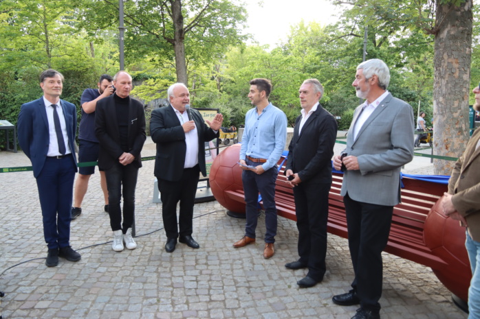 Als Hausherr ergrifft Prof. Jörg Junhold als erster das Wort. „Eine Woche vor Beginn der Fußball-Europameisterschaft eröffnen wir dieses Stadion, das zeigt, dass Leipzig mehr ist: wir können Fußball und Begeisterung, aber auch Kunst, Diskurs, Kultur und vieles mehr. Ich freue mich sehr über die EM-Bank vom bedeutendsten Künstler unserer Stadt – Neo Rauch. So haben wir auch nach der EM eine großartige Erinnerung an diesen Fußballsommer im Zoo.“