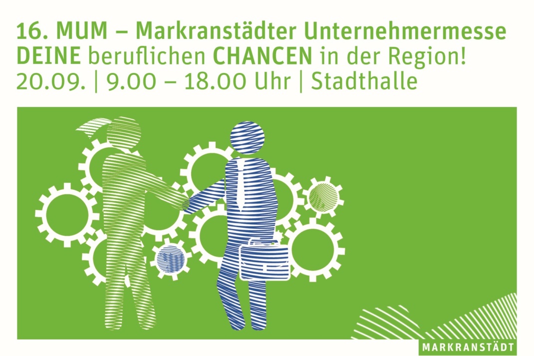 Die nun mehr 16. Ausgabe der Markranstädter Unternehmermesse MUM findet am 20. September 2024 in der Zeit von 9 Uhr bis 18 Uhr in der Stadthalle Markranstädt, Leipziger Str. 4 statt. Die MUM ist eine Berufsorientierungs- und Verbrauchermesse und wird jährlich veranstaltet. Sie bietet Unternehmerinnen und Unternehmern die Möglichkeit zur Vernetzung. Gleichzeitig können Schülerinnen und Schüler bzw. Jobsuchende viel Wissenswertes rund um die Themen Berufe und Berufsorientierung erfahren.
