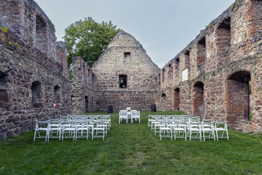 Die standesamtlichen Trauungen in der Ruine finden immer im April und Oktober statt. Termine können bereits reserviert werden für den 4. April 2025 um 18.00 Uhr und 20.00 Uhr sowie für den 10. Oktober 2025 um 18.00 Uhr und 20.00 Uhr. Als Schlecht-Wetter-Variante steht dem Brautpaar, seinen Trauzeugen und den maximal 60 Gästen die Kapelle neben der Klosterruine zur Verfügung.