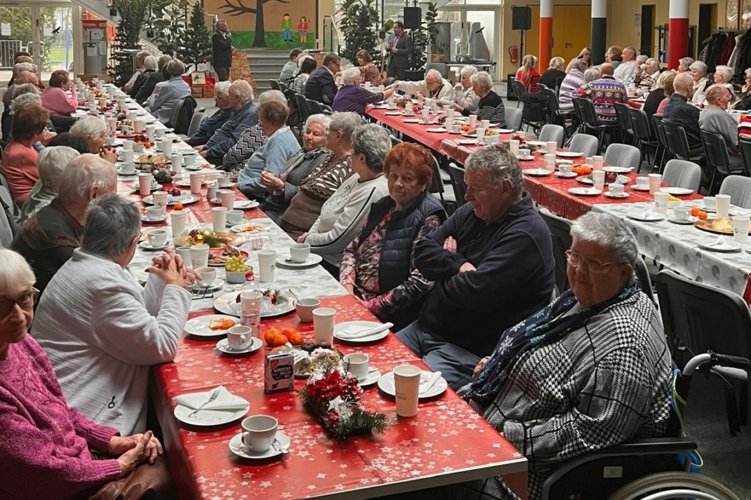 Besonderes Highlight des Nachmittags war die Übergabe von liebevoll gepackten Überraschungsgeschenkbeuteln, die durch die tatkräftige Unterstützung von vielen Helfern ermöglicht wurde. Die Geschenkbeutel enthielten, neben einem Glas Tauchaer Honig, einen kleinen Kalender und leckere Süßigkeiten, die den Seniorinnen und Senioren Freude bereiteten.