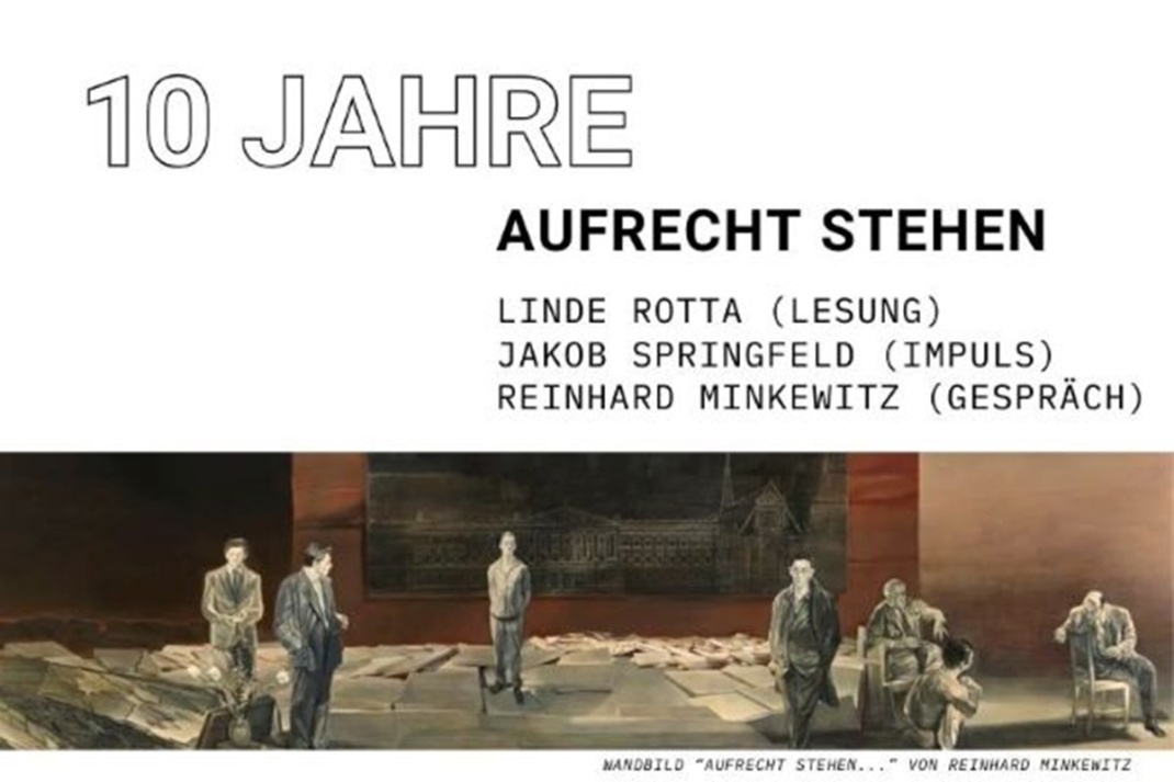 Dazu geplant sind u. a. eine Lesung von Linde Rotta aus ihrem unveröffentlichten Manuskript zur Entstehungsgeschichte des Bildes und ein Impuls des Aktivisten und Autors Jakob Springfeld zu „Aufrecht stehen – heute“. Zudem steht der Künstler Reinhard Minkewitz am Bild für Fragen zur Verfügung.