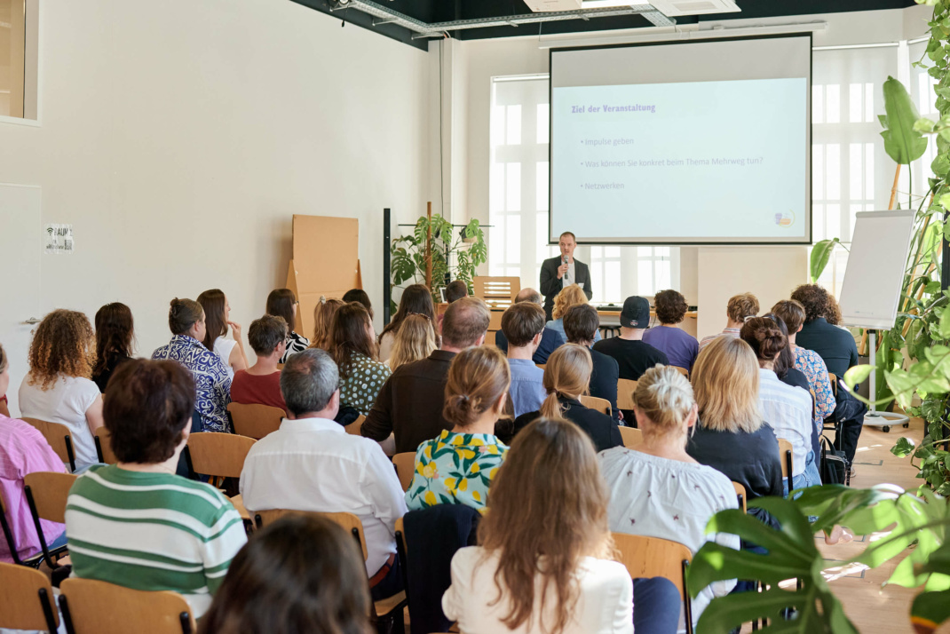 Die Konferenz bot eine Zukunftswerkstatt für Nachhaltigkeit: Gemeinsam mit Akteur*innen aus Gastronomie, Verwaltung, Kammern, Verbänden und Zivilgesellschaft wurden konkrete Lösungen zur Vermeidung von Einwegverpackungen diskutiert und erarbeitet. Aufbauend auf den Projekterfahrungen, die der Projektkoordinator Mirko Schimmelschmidt vom BUND Leipzig präsentierte, lag der Fokus auf der Definition von nächsten Umsetzungsschritten, um Mehrweg in Leipzig weiter voranzubringen.