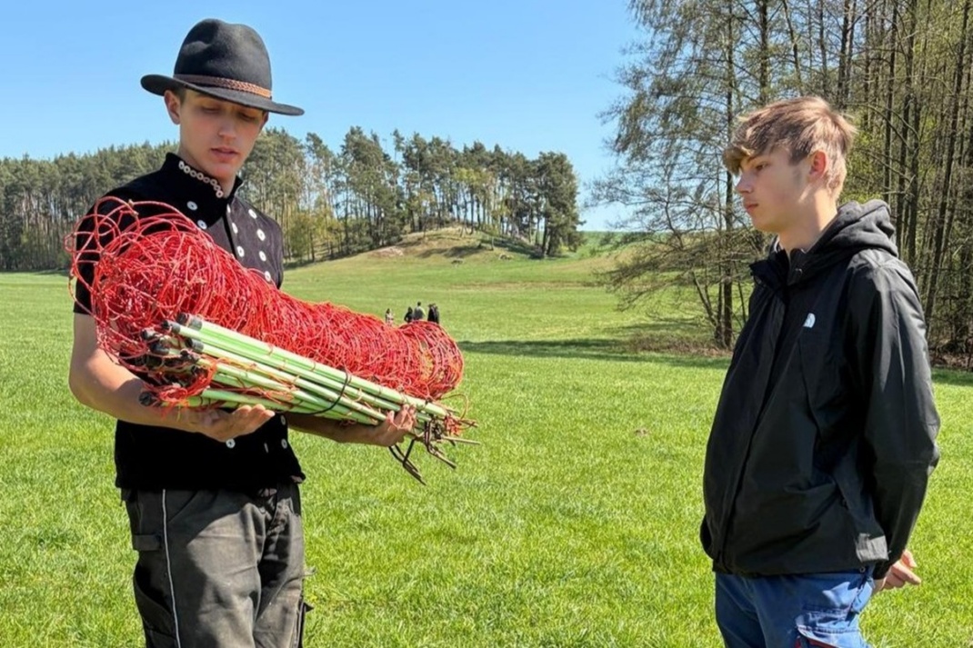 Im Mittelpunkt standen der Weidebau sowie das Bestimmen von Kennarten auf Grünflächen. Dabei gaben erfahrene Lehrlinge ihr Wissen an die Jüngeren weiter. So demonstrierte Manuel Eric Pendzialek, angehender Schäfer im dritten Lehrjahr, das Stecken von Weidezäunen. „Es hat bei mir auch gedauert, bis die Griffe sitzen. Das kann man nur durch Übung lernen“, sagte er.