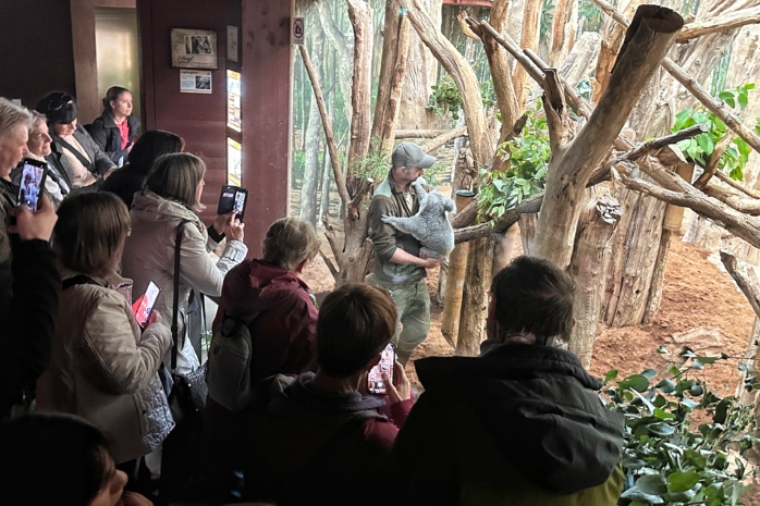 Das Glück, den Mini-Koala auf seiner Mama herumklettern zu sehen, hatte er bisher nicht. Das haben ihm die Besucher voraus, die ab 9:00 Uhr am Morgen vor dem sauberen, mit frischem Eukalyptus ausgestatteten Gehege warten, um einen Blick auf Leipzigs Liebling erhaschen zu können.