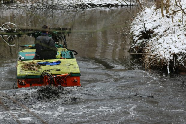 Das Amt für Stadtgrün und Gewässer hat die Maßnahme so beschrieben: “Die sogenannte Teilentkrautung wird auf einer Breite von circa vier Metern in der Mitte des Floßgrabens durchgeführt, somit bleiben die Randbereiche unberührt. Mit den bis Mitte Februar andauernden notwendigen Gewässerunterhaltungsmaßnahmen soll einer zu starken erneuten Verkrautung während der Sommermonate vorgebeugt werden.”