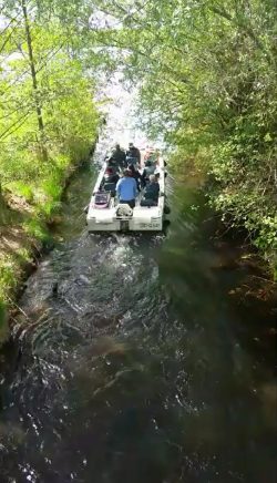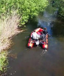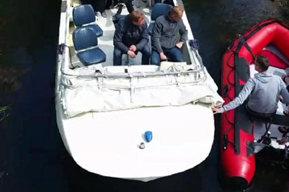 Doch halt, das vergaserbetriebene Schlauchboot hat den Floßgraben dicht gemacht. Die Motorboote aber offensichtlich nicht kontrolliert.