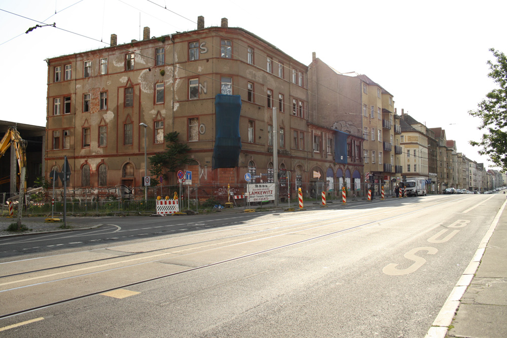 Für das Magistralenmanagement Georg-Schumann-Straße ist das ein herber Rückschlag, denn das markante Eckgebäude an der Laubestraße war eine der Perlen, die man an der sonst nicht allzu sehr mit markanten Gebäuden gesegneten Straße unbedingt erhalten wollte.