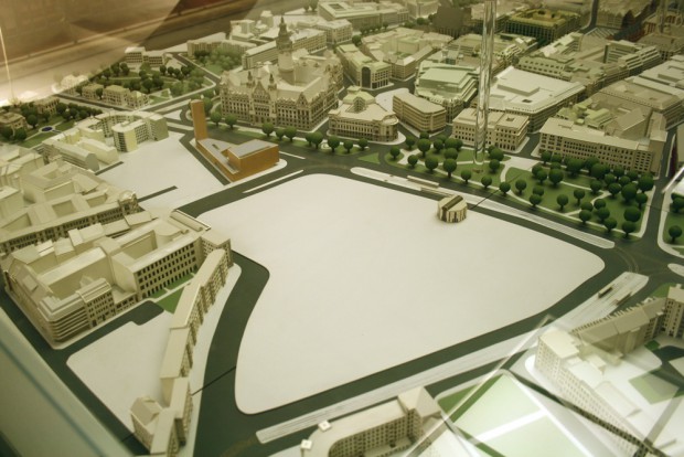 „Wir wollen, dass mit der Bebauung des Quartiers nicht primär private Investoreninteressen bedient werden, sondern ein urbaner öffentlicher Raum für alle BürgerInnen entsteht“, erklärt dazu Vorstandssprecher Lorenz Bücklein. Lenkt den Blick aber auch gleich auf den westlichen Teil, den eigentlichen Wilhelm-Leuschner-Platz, der beinah von einem Denkmal verschlungen worden wäre, mit dem die Leipziger so überhaupt nichts anfangen konnten: “Sowohl mit einer großzügigen Esplanade als auch mit dem historischen Königsplatzoval kann ein Platz für größere Veranstaltungen und alltägliche Begegnung geschaffen werden”, finden die Grünen, wenn man denn schon mal über die künftige Gestaltung des Wilhelm-Leuscher-Platzes nachdenken will.