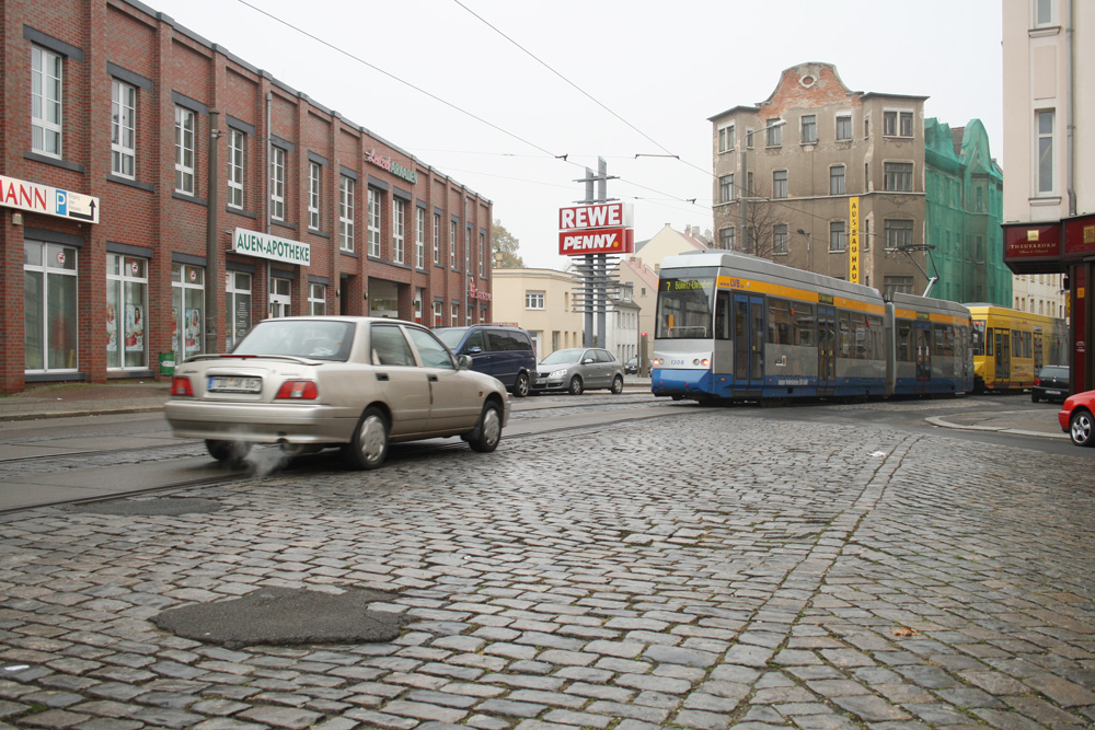Aber all das ist nur Begleitmusik. Denn mittlerweile kann auch die Stadt Leipzig auf 20 Jahre Straßenumbau zurückblicken. Mit guten und mit schlechten Erfahrungen. Und eine dieser Erfahrungen sind: Straßen bekommen kein neues Leben, wenn man sie als Schnellstraßen baut. Häuser bleiben unsaniert, Geschäfte leer. Die Aufenthaltsqualität ist Null. Tatsächlich haben sich jene Umbauprojekte als die erfolgreicheren erwiesen, in denen der Verkehr deutlich entschleunigt wurde. Mit Radwegen, genügend breiten Fußwegen, Baumscheiben und dazwischen angeordneten Parkbuchten. Und seit 2008 immer stärker: Haltestellen am Fahrbahnrand.