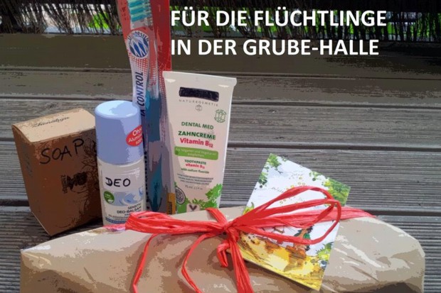 .. läuft unterdessen auf Hochtouren. Informationen findet man hier auf der L-IZ.de. Unterdessen sind weitere Annahmestellen für die Willkommenspakete hinzugekommen. Dort können also weitere Begrüßungspäckchen abgegeben werden. Jedes Set soll folgende 5 Artikel enthalten: 1 Zahnbürste, 1 Zahncreme, 1 Deo und 1 Stück Seife, welche separat zu verpacken ist, wegen des Seifengeruches. Dazu noch eine Packung Kekse (hitzebedingt schokofrei) und fertig ist das persönliche Hygieneset mit Willkommensgruß für einen Flüchtling.