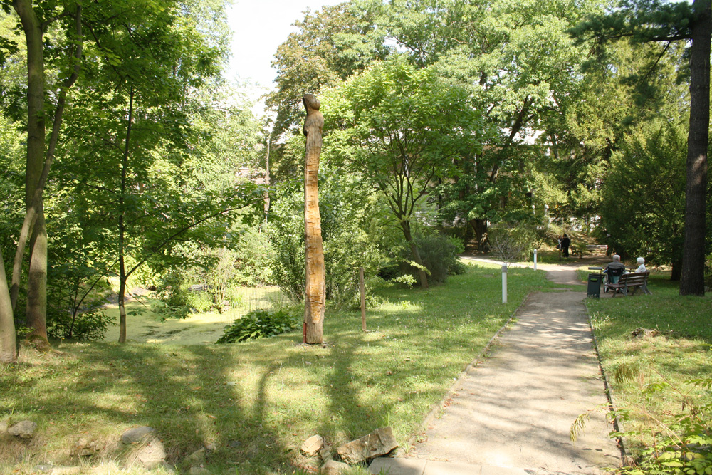 Die Ergebnisse des Symposiums stehen heute dort, wo sie entstanden sind, mitten im Park – als schlanke Säule mit nacktem Frauentorso direkt am Teich Reinhard Röslers  “Gallionsfigur 62”, als Holzfigur, die an ein sich umarmendes Liebespaar erinnert, Helene Garcia Morenos “Ohne Titel” auf der anderen Seite des Teichs oder – auf einem Hügel in der Nähe – José Antonio Cauja “Transcendental”, eine weiße Sandsteinplastik, die irgendwie wie ein großes Auge aussieht, eine Muschel, ein Sessel – transzendental eben.